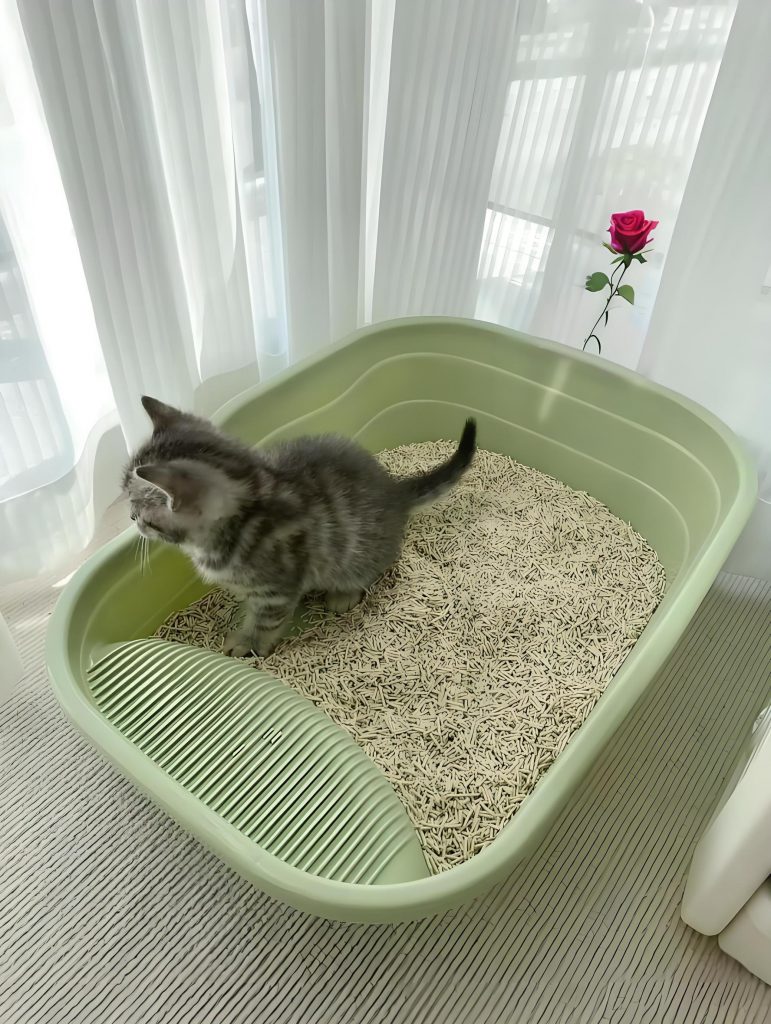 2. Place the litter tray in a dry, ventilated and relatively quiet place to avoid being disturbed when it uses the toilet. Secondly, don’t put the litter box very close to its dining area, because this will also affect its appetite, cats are smart little guys, and they can naturally distinguish between good and bad taste.